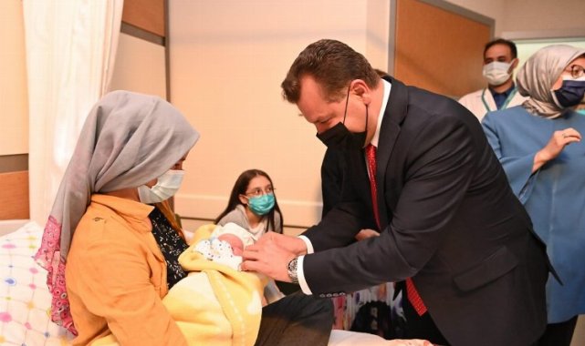 Balıkesir’in düşman işgalinden kurtuluşunun 100. Yılında Balıkesir protokolü dünyaya gözlerini açan bebekleri ziyaret ederek sağlıklı bir ömür diledi.
