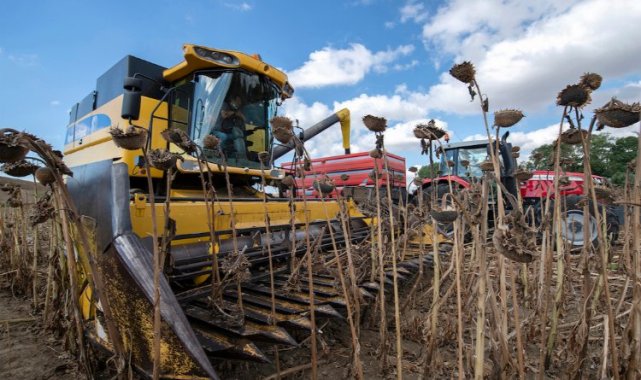 1000 Çiftçi 1000 Bereket programı kapsamında üretim yapan çiftçiler, ayçiçeği hasadına başladı.