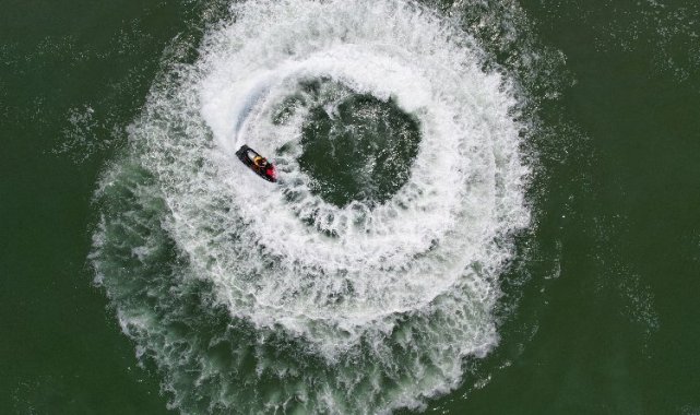 Türkiye'nin mavi bayraklı en uzun plajı olma unvanına sahip Karacabey Boğazı plajında cankurtaranlar tarafından yapılan jet skili kurtarma tatbikatı nefesleri kesti. Kumsaldaki tatilciler, kurtarma tatbikatını ilgiyle izledi.