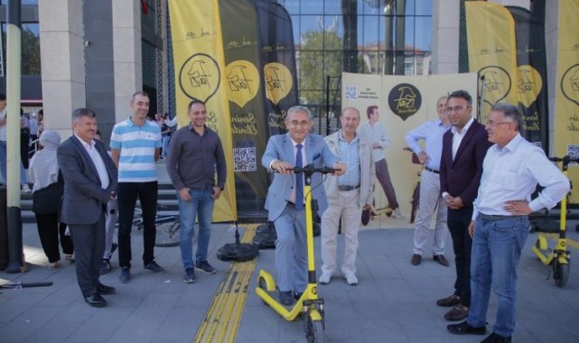 e-Belediyecilik projeleri kapsamında Kütahya'ya kazandırılan e-scooter’ların tanıtımını Belediye Başkanı Prof. Dr. Alim Işık yaptı.