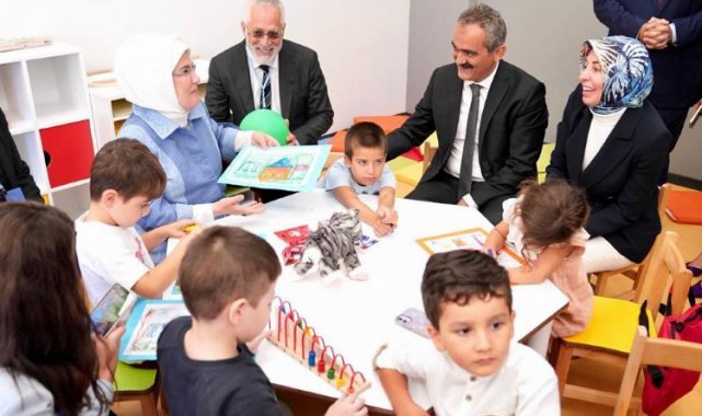 Bakan Özer, Ankara'daki 5 yaş okullaşma oranı yüzde 42'den yüzde 84'e çıkarıldığını belirterek, "İzmir'deki beş yaş okullaşma oranı yüzde 55'ti, bugün itibarıyla yüzde 92'dir. Bir de üç farklı ilden örnek vereyim. Giresun'da yüzde 25'ti, şu anda yüzde 98 oldu on ayda. Erzurum'da yüzde 38'di, şu anda yüzde 77. Siirt'te yüzde 33'tü, şu anda yüzde 90" diye konuştu.Bakan Özer, konuşmasının sonunda destekleri için Emine Erdoğan'a ve hayırsever Erol Tabanca ile emek veren herkese teşekkür etti.Bakan Özer'in yanı sıra eşi Nebahat Özer, eski Milli Eğitim Bakanı Nabi Avcı ile hayırsever Erol Tabanca ve ailesi katıldı.
