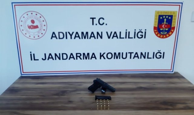 Adıyaman İl Jandarma Komutanlığı Merkez İlçe Jandarma Komutanlığı ekipleri Altınşehir mahallesinde 16 Eylül 2022 günü gece 01.30'da icra edilen önleyici kolluk faaliyeti esnasında şüphelenilen araç içerisinde bulunan bir kişinin üzerinde yapılan kontroller neticesinde 1 adet ruhsatsız tabanca, 2 adet şarjör ve 16 adet fişek ele geçirildi.Şüpheli hakkında adli işlemler yetkili makamlar kontrolünde devam ediyor.