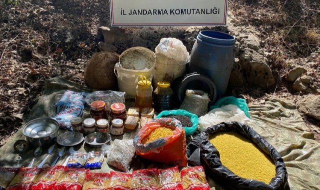 Adıyaman'ın Kömür Beldesi Derinsu kırsalında 2017-2019 yılları arasında terör örgütü mensupları tarafından kullanıldığı belirlenen toprağa gömülü yaşam malzemeleri ele geçirildi.