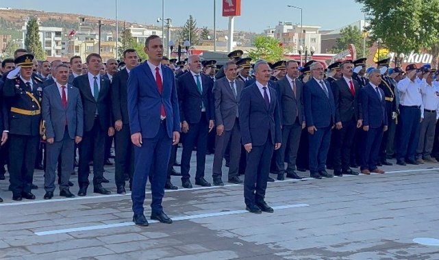 Tarihi şan ve şerefle dolu aziz milletimizin Türk Silahlı Kuvvetleri ile bütünleşerek Anadolu topraklarının ezeli ve ebedi vatanımız olduğunu tüm dünyaya ilan ettiği Başkomutanlık Meydan Muharebesinin 101. yıl dönümü "30 Ağustos Zafer Bayramı" Adıyaman'da Atatürk Anıtına çelenk konulmasıyla başladı.ADIYAMAN (İGFA) - Atatürk anıtına çelenk konulması, bir dakikalık saygı duruşu ve İstiklal Marşının okunmasıyla başlayan 30 Ağustos Zafer Bayramı töreni, Adıyaman Vali Vekili Mehmet Faruk Kazdal'ın Valilik Makamında tebrikatları kabulü ile devam edildi.Valilik Makamındaki Tebrikat Töreni sonrası Valilik Konferans Salonundaki törene geçildi.Bir dakikalık saygı duruşu ve İstiklal Marşının okunmasının ardından, Cumhurbaşkanımız Sayın Recep Tayyip Erdoğan'ın 30 Ağustos Zafer Bayramı dolayısıyla yayınladığı mesajı okundu. Cumhurbaşkanımız Sayın Recep Tayyip Erdoğan'ın mesajının okunmasının ardından Askerlik Şubesi Başkanı Binbaşı Serkan Güvel tarafından 30 Ağustos Zafer Bayramı dolayısıyla günün anlam ve önemini belirten bir konuşma yapıldı. Günün anlam ve önemini belirten konuşmaların ardından, Adıyaman Anadolu Lisesi öğrencilerinden Olcay Aslan ve İsmail Büyükpolat tarafından şiirler okundu. Adıyaman'da kutlanan 30 Ağustos Zafer Bayramı etkinliklerine, Vali Vekili Mehmet Faruk Kazdal, Adıyaman Milletvekilleri Mustafa Alkayış, Abdurrahman Tutdere, Belediye Başkanı Süleyman Kılınç, Adıyaman Üniversitesi Rektörü Prof. Dr. Mehmet Kelleş, kamu kurum ve kuruluşların amirleri, siyasi parti başkanları, sivil toplum kuruluşu temsilcileri, jandarma ve emniyet personeli ile şehit aileleri ve Kıbrıs Gazileri katıldı.