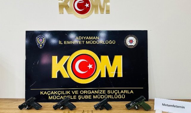 Adıyaman Kaçakçılık ve Organize Suçlarla Mücadele Şube Müdürlüğü gerçekleştirdiği yol kontrolünde 4 adet tabanca ve bir miktar uyuşturucu ele geçirdi.