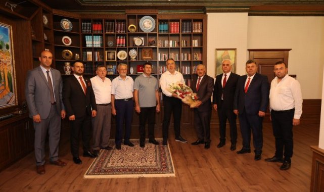 Nevşehir Belediye Başkanı Savran, Nevşehir Ticaret İl Müdürü Ahmet Taygurt, Nevşehir Esnaf ve Sanatkarlar Odaları Birlik Başkanı Mehmet Pınarbaşı, Kredi ve Kefalet Kooperatifi Başkanı Erdoğan Korkutmaz ve oda başkanlarını başkanlık makamında konuk etti.