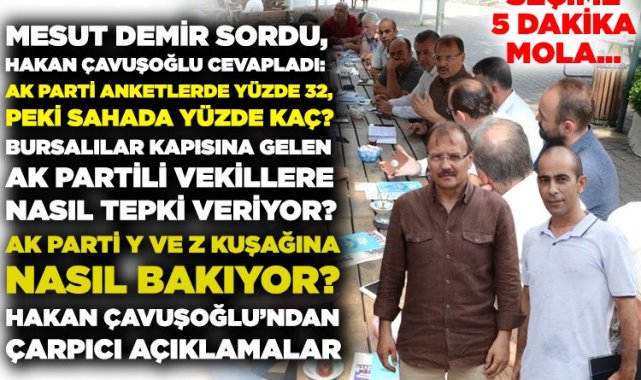 BURSA (İGFA) – İşte Mesut Demir'in kaleme aldığı AK Parti Bursa Milletvekili Hakan Çavuşoğlu ile "Seçime 5 Dakika Mola" söyleşisi…
