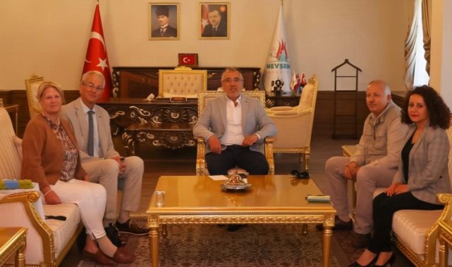 Nevşehir Belediye Başkanı Dr. Mehmet Savran, Alman-Türk Dostluk Derneği Başkanı Udo Kaupisch ve eşi Gabriele Kaupisch'i başkanlık makamında konuk ederek bir süre görüştü.