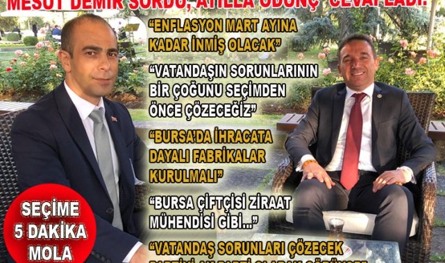 TBMM Dışişleri Komisyonu Üyesi, Tarım, AK Parti Bursa Milletvekili Atilla Ödünç ile "Seçime 5 Dakika Mola" söyleşisinde gündem, siyaset, seçim, ekonomi ve tarımı konuştuk.
