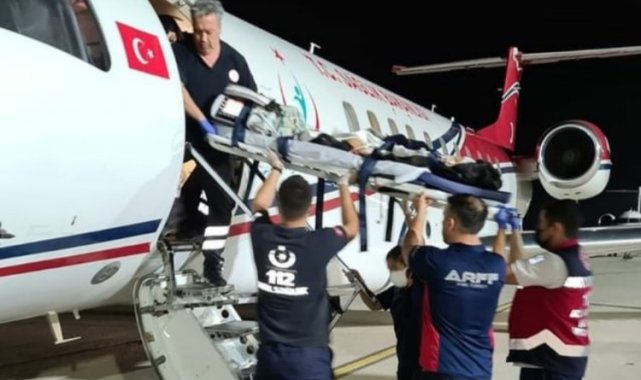 Aydın'da yoğun bakımda yatan 1,5 yaşındaki bebek ambulans uçakla İstanbul'a sevk edildi.Şahin KANAT / Büyükşehir Medya (AYDIN İGFA) - Aydın'ın Didim ilçesinde boğulma dolayısıyla İlçe Devlet Hastanesi'nde ilk müdahalesi yapılan 1,5 yaşındaki bebek için İl Sağlık Müdürlüğü seferber oldu.Aydın Kadın Doğum ve Çocuk Hastalıkları Hastanesine sevk edilen ve yoğun bakımda tedavi altına alınan 1,5 yaşındaki çocuğun sağlığına tekrar kavuşması için ambulans uçakla İstanbul'a sevk edildi.Ekipler bebeği önce ambulansla Aydın'dan İzmir Adnan Menderes Havalimanı'na götürdü. Sağlık bakanlığı tarafından burada hazırda bekletilen ambulansla uçağa sevk edilen bebek tedavisi için İstanbul'a gitti.