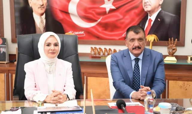 Malatya'ya bir dizi temaslarda bulunmak amacı ile gelen Aile ve Sosyal Hizmetler Bakanı Mahinur Özdemir Göktaş, Malatya Büyükşehir Belediyesi'ni ziyaret etti.MALATYA (İGFA) - Aile ve Sosyal Hizmetler Bakanı Mahinur Özdemir Göktaş, Malatya Büyükşehir Belediyesi'ni ziyaret etti.Bakan Göktaş'ı makamında ağırlayan Büyükşehir Belediye Başkanı Selahattin Gürkan, Büyükşehir Belediyesi'nin deprem süresi boyunca yaptığı çalışmaları anlatarak, Malatya'da yürütülen sosyal hizmet çalışmaları ile ilgili bilgiler verdi.Malatya sürdürülen çalışmaların son durumu hakkında bilgiler aktaran Başkan Gürkan, yerinde dönüşüm çalışmalarına bir kez daha vurgu yaptı.Büyükşehir Belediyesi'nin deprem süresi boyunca yoğun mesai harcayarak, yaraların sarılması noktasında büyük gayreteler gösterdiğini belirten Bakan Mahinur Özdemir Göktaş,"Büyükşehir Belediye Başkanımızın yaptığı çalışmaları takdirle gözlemledim. Depremden sonra Malatya zor bir süreç geçirdi. Bu süreçte milletçe büyük çaba sarf ettik. Ancak acımız büyük ama inşa sürecinde el birliğiyle devam ediyoruz. Bu dönemde çalışmalarını aralıksız bir şekilde sürdüren Sayın Valimiz Hulusi Şahin, Büyükşehir Belediye Başkanımız Selahattin Gürkan ve bütün ilçe belediye başkanlarımıza ve teşkilatlara teşekkür ediyorum. Çünkü depremin ilk anından beri canla başla sahadaydınız. Sizlerin sayesinde çok daha fazla canımız kurtarıldı. Burada devlet olarak, her zaman milletimizin yanında olduğumuzu ispatladınız. Büyükşehir Belediyesi'nin yapmış olduğu çalışmalara baktığımızda bunu daha net görebiliyoruz.