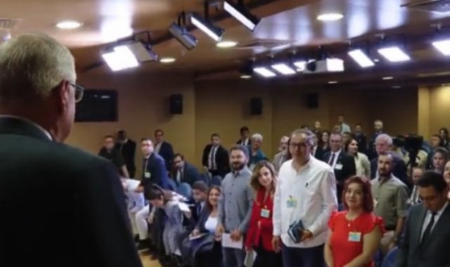 Milli Savunma Bakanlığı'nın basın bilgilendirme toplantısının gerçekleştirildiği salona habersiz giren Bakan Yaşar Güler, başka bir programa giderken selam vermek için uğradığını belirterek, gazetecilere başarı dileklerini iletti.ANKARA (İGFA) - Millî Savunma Bakanlığı'nın faaliyetleri başta olmak üzere gündemdeki önemli konulara ilişkin Basın Bilgilendirme Toplantısı gerçekleştirildi.Bakan Yaşar Güler ise, Basın Bilgilendirme Toplantısı sırasında gazetecilere bir sürpriz yaptı.Toplantının gerçekleştiği salona habersiz bir ziyaret gerçekleştiren Bakan Güler, başka bir programa giderken selam vermek için uğradığını belirtti.Basının etkinliği ve toplumu aydınlatma gibi üstlendiği kritik görevlerle toplum hayatında son derece önemli bir yer tuttuğunu vurgulayan Bakan Yaşar Güler, ilkeli ve tarafsız bir anlayışla halkın doğru bilgiye ulaşması ve sağlıklı bir kamuoyunun oluşmasında gerçeğin temsilcisi olarak basının büyük sorumluluklar üstlendiğine dikkati çekti.İletişim ve etkileşimin baş döndürücü bir hızla arttığı, dezenformasyon ve bilgi kirliliğiyle mücadelenin büyük önem taşıdığı günümüzde hakiki ve güvenilir bilgiye ulaşmanın her zamankinden daha kıymetli hale geldiğine dikkati çeken Bakan Yaşar Güler, "Bu anlayışla Bakanlık olarak tüm faaliyetlerimizi büyük bir şeffaflık içinde icra ederken faaliyet alanlarımıza ve gelişmelere ilişkin kamuoyunu sizlerin aracılığıyla ilk elden bilgilendirmeye devam edeceğiz" diye konuştu.Bakan Yaşar Güler sözlerinin sonunda gazetecilere çalışmalarında başarı dileklerini ilettikten sonra salondan ayrıldı.https://twitter.com/tcsavunma/status/1676912300668735489