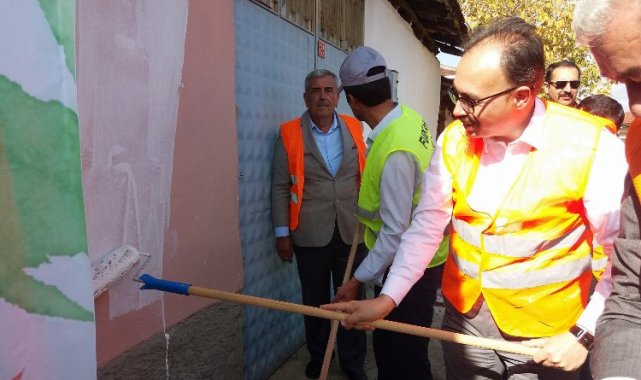 Bilecik Valiliği ve İl Özel İdaresi tarafından oluşturulan "Köyümü Seviyorum Sokağımı Boyuyorum" projesi kapsamında Pazaryeri ilçesindeki köy evleri boyandı.Sedat CEYLAN / BİLECİK (İGFA) - Bilecik'in Pazaryeri ilçesine bağlı Kınık Köyü'nde "Köyümü Seviyorum Sokağımı Boyuyorum Projesi" kapsamında sokaklar sağlıklaştırılıyor.Köylerdeki evler beyaz renge boyanıyor. Kınık köyünde ilk duvarı boyayan Bilecik Valisi Dr. Kemal Kızılkaya, ilçe Kaymakamı Ferhat Altay ve Belediye Başkanı Zekiye Tekin oldu.Vali Dr. Kızılkaya Kınık Köyünde düzenlenen programda projeyle köy sokaklarının daha da güzelleşeceğini belirtti.Köylü vatandaşlarla sohbet eden Vali Kızılkaya, Kınık'ta Köylere Hizmet Götürme Birliği ve İl Özel İdaresi tarafından yaptırılan 75 tonluk köyün içme suyu deposunu inceledi. Burada öğrencilerle de bir araya gelen öğrencilere üç şeye dikkat edilmesini söyleyen Vali Kızılkaya, öğrencilere; çalışkan, ahlaklı ve temiz olmanın önemini vurguladı.Bu arada Pazaryeri'nde geçtiğimiz ay yapımına başlanılan 16 derslikli Atatürk Ortaokulu ve Şehit Zafer Koyuncu İmam Hatip Ortaokulu inşaatlarını da gezen Vali Kızılkaya, Pazaryeri Kaymakamı Ferhat Altay ve inşaat firması yetkililerinden çalışmalar hakkında bilgiler aldı.
