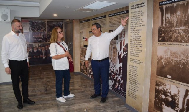 Bursa'da Yenişehir eski Belediye Başkanı Turhanettin Ergünaç'ın eşi Emre Ergünaç, CHP İl Başkanlığı'nı ziyaret etti.Gürhan ADANA / Yenişehir Memleket (BURSA İGFA) - Bursa'da 1984-1989 ile 1994-1999 yılları arasında 2 dönem Yenişehir Belediye Başkanlığı yapan ve geçen yıl vefat eden Turhanettin Ergünaç'ın eşi Emre Ergünaç CHP İl Başkanlığı'nda oluşturulan müzede adeta geçmişe bir yolculuk yaptı.CHP Bursa İl Başkanlığı, partinin 100 yıllık tarihini yaklaşık 3 bin fotoğraf ve gazete kupürünün kullanıldığı müzeye yansıtmıştı.Eşi eski Belediye Başkanı Turhanettin Ergünaç için ayrılan bölümü uzun uzun inceleyen Emre Ergünaç, duygusal anlar yaşadı.Emre Hanım, müzeyi Yenişehir ve Bursa Büyükşehir Belediye Meclis Üyesi Tayfun Sırman ve CHP İl Başkanı İsmet Karaca ile birlikte gezdi. Ergünaç, partinin adeta belleği niteliğindeki çalışmayı çok beğendiğini ve duygulandığını ifade etti.CHP İl Başkanı Karaca, partinin 1923 yılından bu yana Bursa'nın tarihsel geçmişine ait önemli olay ve kişileriyle ilgili bilgilerin yer aldığı müze çalışmasının gördüğü ilgiyi anlattı. Karaca, "Müzemiz geçmişe ait bir bellek niteliğinde" dedi.