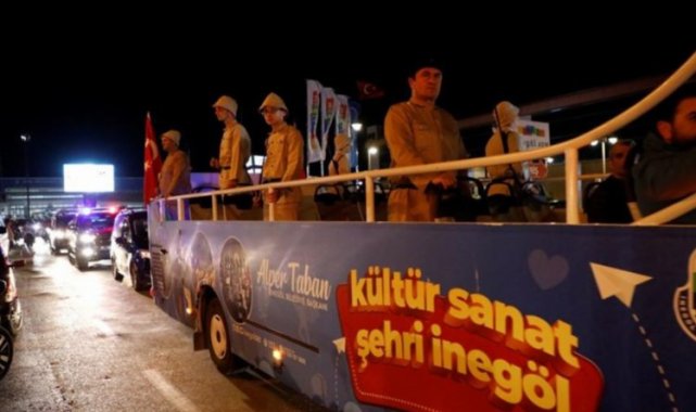 Bursa'da 6 Eylül İnegöl'ün düşman işgalinden kurtuluşunun 100. Yılı etkinlikleri kapsamında İnegöl Belediyesi Kültür Sanat Otobüsü ile kurtuluş coşkusu tüm şehre yayıldı. Jandarma, Emniyet ve Zabıta Müdürlüğü ekiplerinin de araçlarıyla katıldığı araç korteji, renkli görüntülere sahne oldu.BURSA (İGFA) - İnegöl Belediyesi, 6 Eylül 1922'de düşman işgalinden kurtarılan şehrin kurtuluşunun 100. yılı etkinliklerini sürdürüyor.Kurtuluş coşkusunun tüm şehre yayılması ve vatandaşların da bu coşkuya ortak edilmesi adına Pazartesi akşamı Kültür Sanat Otobüsü ile kolluk kuvvetlerinin araçlarıyla katıldığı şehir turu gerçekleştirildi.3 Eylül Cumartesi akşamı Bursa Bölge Devlet Senfoni Orkestrası konseri ile başlayan kurtuluş etkinlikleri, Pazar günü kurtuluşun kilit noktası olan Mustafatepe'den Halhalca Şehitliğine halk yürüyüşü ve kros yarışması ile devam etmişti.7'den 77'ye her vatandaşımızın bu coşkuya ortak olması adına Pazartesi akşamı da kurtuluş coşkusunu tüm şehre yaymak adına İnegöl Belediyesi Kültür Sanat Otobüsümüz ile birlikte; Jandarma Komutanlığı, Emniyet Müdürlüğü ve Zabıta Müdürlüğü araçlarıyla şehir turu düzenlendi.Hikmet Şahin Kültür Parkı içerisinden hareket eden araç korteji, şehir merkezinde 1 saati aşkın süreyle tur atarak 6 Eylül Kurtuluş Gününe dikkat çekti. Kültür Sanat Otobüsünde asker kıyafetiyle halkı selamlayan ekipler ve araç kortejine vatandaşlar da alkışlarıyla destek verdi.