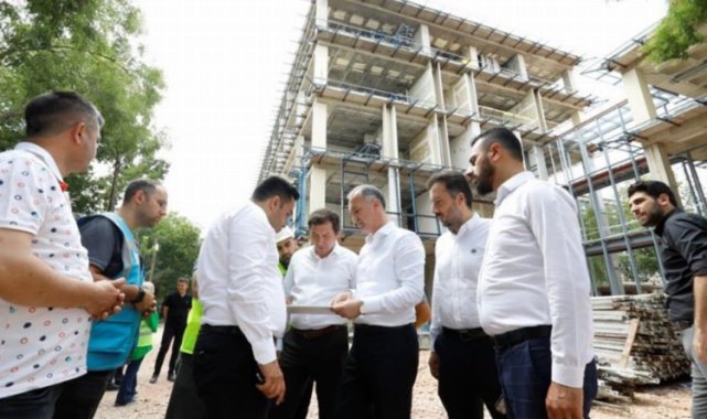 Bursa'da İnegöl Belediyesi Yeni Hizmet Binasında çalışmalar sürüyor. Yıl sonuna kadar tamamlanması hedeflenen hizmet binasında dış cephe mantolama çalışmaları başladı.BURSA (İGFA) - İnegöl Belediyesi'nin Yıl sonuna kadar tamamlanması planlanan yeni hizmet binasında sona yaklaşılırken, dış cephe mantolama çalışmaları da başladı.Bir yandan bina içerisinde hummalı bir çalışma sürdüren müteahhit firma, bir yandan da hedeflenen tarihe binayı yetiştirmek üzere dış cephe çalışmalarının startını verdi.İnegöl Belediye Başkanı Alper Taban, beraberindeki Başkan Yardımcısı Fevzi Dülger, AK Parti İlçe Başkanı Mustafa Durmuş, parti yöneticileri ve meclis üyeleriyle birlikte yeni belediye hizmet binası şantiyesini ziyaret etti.Başkan Taban, hedeflerinden şaşmadan yeni belediye hizmet binasının belirlenen tarihe kadar yetiştirmek üzere müteahhit firma ve çalışma arkadaşlarının hummalı bir şekilde çalıştığını ifade ederek, "Hem heykel bölgesi hem de karşı adada eski hükümet konağı, eski kaymakamlık lojmanı ve sedir kafenin bulunduğu alanda şehrimize yakışan bir meydan oluşturmak istiyoruz. 7/24 ilçe halkımıza hizmet verecek olan, içerisindeki sosyal alanlarla yaşayan bir belediye hizmet binası da bu alanın önemli parçalarından biri olacak" dedi.Yükselen binanın sadece bir belediye hizmet binası olmayacağının altını çizen Taban, burada; sergi alanları, İnegöl'ümüzün lezzetlerinin yer aldığı Gastro İnegöl restoranı, kafeterya, gençlerimiz için alanlar ve toplantı salonları gibi vatandaşlarımızın da sürekli kullanacağı alanlarında yer alacağını söyledi.