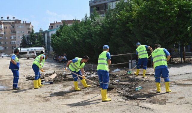 Bursa'nın Mudanya ilçesinde şiddetli yağış sonrası oluşan selin açtığı yaralar, Büyükşehir Belediyesi olmak üzere ilgili tüm kurumların katılımıyla 301 araç ve 911 personelle devam ediyor.