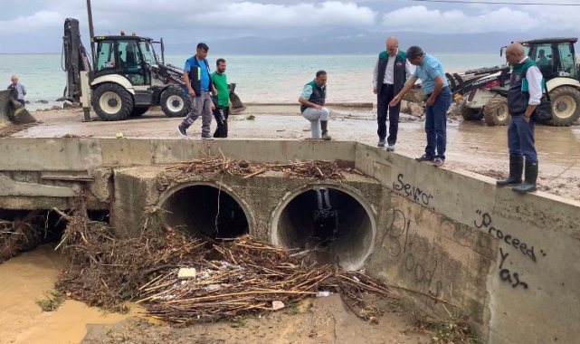 Bursa'nın Mudanya ilçesinde sabah saatlerinde etkili olan kuvvetli sağanak yağış kaynaklı ev ve işyerlerinde oluşan su baskınlarına yönelik ekiplerin müdahaleleri sürerken, diğer yandan tarım arazileri ile ev ve işyerlerinde hasar tespit çalışmaları sürüyor.BURSA (İGFA) – DSİ 1. Bölge Müdürü Murat Şayan ve teknik ekibi, Mudanya'daki yağış ardından meydana gelen dere taşkınının yaşandığı bölgede ve köprüde incelemelerde bulundu.Mudanya İlçe Tarım ve Orman Müdürü Ergün Karadağ ve beraberindeki zirai teknik ekip de, yağış ve dolu sonrası tarım arazilerinde oluşabilecek zararlar için tespit çalışmaları başlattı. Doludan hasar gören meyve ve sebze bahçelerindeki ürünlerle ilgili üreticileri ziyaret eden müdürlük, ön çalışma başlattı.Mudanya Kaymakamlığı da selden ve su baskınlarından etkilenen esnafların hasar tespitlerini yapmak üzere Hasar Tespit Komisyonu kurdu. Hasar tespiti için adı soyadı, işyeri adı ve adresi ile iletişim bilgilerinin 0224 544 1001 nolu Kaymakamlık Özel Kalem Müdürlüğü'ne iletilebileceği bildirildi.Bursa Büyükşehir Belediyesi ise, saat 18.30 itibariyle 280 ihbara müdahale edildiğini duyurdu. 61 Personel, 5 Yol süpürme aracı, 7 Su tankeri, 7 Kamyonet ile temizlik çalışmalarının sürdüğü Mudanya'da, Buski ve itfaiye ekiplerince vatandaşlardan gelen ihbar ve talepler doğrultusunda hareket edildiğini kaydetti.