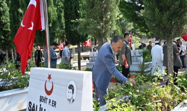 Bursa Valiliği'nin koordinasyonunda Bursa Büyükşehir Belediyesi tarafından düzenlenen 15 Temmuz Demokrasi ve Milli Birlik Günü etkinlikleri kapsamında Hamitler ve Pınarbaşı Şehitliklerinde anma töreni düzenlendi.BURSA (İGFA) - 15 Temmuz hain FETÖ darbe girişiminin yedinci yıldönümünde, 15 Temmuz şehitleri Bursa'da da farklı programlarla anılıyor. Bursa Valiliği koordinasyonunda Bursa Büyükşehir Belediyesi tarafından düzenlenen etkinlikler kapsamında Vali Yakup Canbolat ve Büyükşehir Belediye Başkanı Alinur Aktaş başta olmak üzere Bursa protokolü ilk olarak Hamitler Şehitliği'ni ziyaret etti. Burada şehit mezarlarına kırmızı karanfiller bırakan protokol üyeleri, şehitleri dualarla andı. Bursa protokolü daha sonra Pınarbaşı Şehitliği'ni ziyaret etti. Burada da tüm şehit mezarlarına kırmızı karanfiller bırakıldı, şehit yakınları ile sohbet edildi. Kuran-ı Kerim okunması ve yapılan duanın ardından şehitlikteki anma töreni sona erdi.15 Temmuz gecesi yaşanan ihaneti konu alan fotoğraf sergisi de Tarihi Belediye Binası yanındaki UNESCO Meydanı'nda ziyarete açıldı. Büyükşehir Belediyesi Şehir Tiyatrosu oyuncularının Orkestra Şube Müdürlüğü işbirliğiyle hazırladığı 'Adım Ömer Halisdemir' oratoryo gösterisi de beğeniyle izlendi.