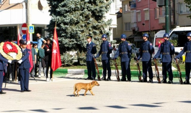 Cumhuriyet'in Kuruluşunun 99'uncu Yıldönümü Etkinlikleri öncesi düzenlenen çelenk sunma töreninde, tören alanına giren "minik dost" gülümsemelere neden oldu.Gürhan ADANA/Yenişehir Memleket (BURSA İGFA)