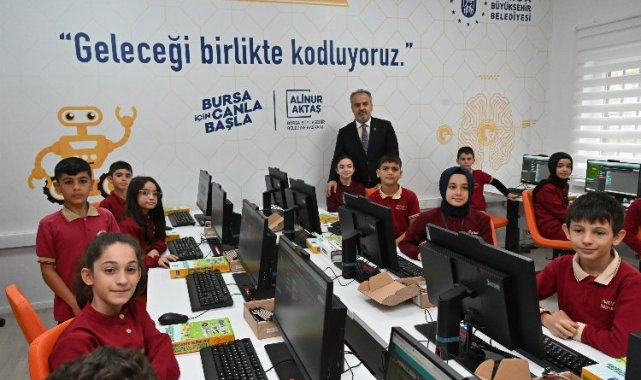 Bursa Büyükşehir Belediyesi, eğitim çağındaki çocukların robotik kodlama ve yazılım alanlarında daha iyi eğitim alabilmeleri amacıyla Milli Eğitim Bakanlığı’na bağlı okullarda ‘Bilişim Atölyeleri’ açmaya devam ediyor.