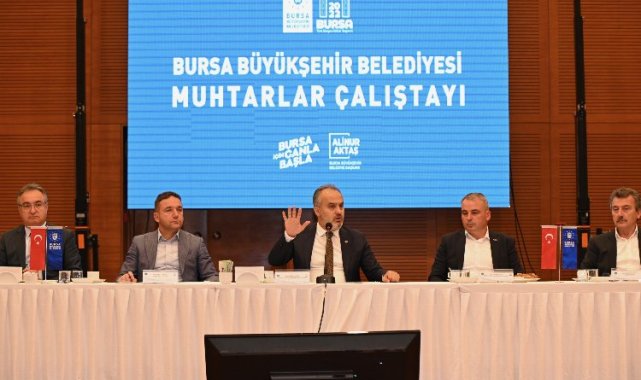 Sorunları kaynağında belirleyip, kısa sürede çözüm üretmek amacıyla sık sık ilçe programları düzenleyip, muhtarlarla bir araya gelen Bursa Büyükşehir Belediye Başkanı Alinur Aktaş, bu kez Muhtarlar Çalıştayında 17 ilçedeki Muhtarlar Derneği başkan ve yöneticileriyle buluştu.