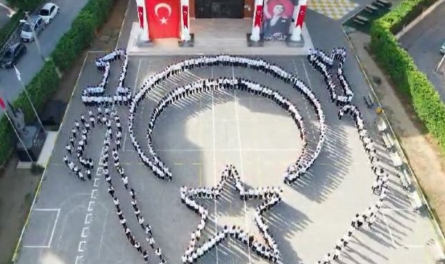Bursa'nın Nilüfer ilçesinde eğitim öğretim veren Sadettin Türkün Ortaokulu öğrencileri, Cumhuriyetin 100. yılı kutlamaları dolaysııyla okul bahçesine özel koreografiyle ay yıldız ve 100. yıl yazdı.BURSA (İGFA) - Türkiye Cumhuriyeti'nin 100. yılı kutlamaları kapsamında Bursa'nın Nilüfer ilçesindeki Sadettin Türkün Ortaokulu öğrencileri gururlu güne coşku kattı. Öğrenciler okul bahçesindeki özel koreografiyle ay yıldız oluşturduktan sonra 100. yıl yazdı.Okul öğrencilerinin 100. yıl coşkusu Ahmet Kutsi Tecer'e ait 29 Ekim şiiriyle klip haline getirildi.