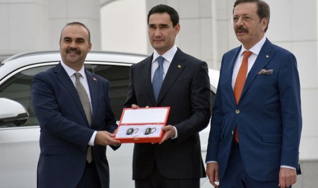 Sanayi ve Teknoloji Bakanı Mehmet Fatih Kacır ve Togg heyeti, Pamukkale'den adını alan iki adet Beyaz renkli Togg'u Türkmenistan Devlet Başkanı Serdar Berdimuhamedov'a düzenlenen törenle teslim etti.ANKARA (İGFA) - Daha önce Azerbaycan ve Kazakistan'a teslim edilen Togg'un yeni varış noktası Türkmenistan oldu. Sanayi ve Teknoloji Bakanı Mehmet Fatih Kacır, Türkiye Odalar ve Borsalar Birliği (TOBB) ve Togg Yönetim Kurulu Başkanı Rifat Hisarcıklıoğlu ile birlikte, iki adet beyaz renkli Togg'u Türkmenistan Devlet Başkanı Serdar Berdimuhamedov'a, Arkadağ Akıllı Şehri'nin açılış törenlerinde teslim etti.