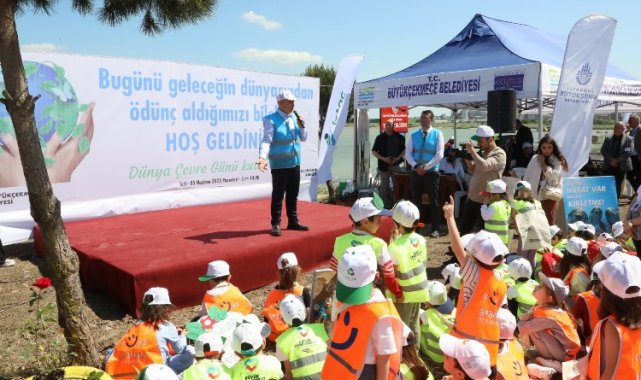 Büyükçekmece Belediyesi'nin 5 Haziran Dünya Çevre Günü kapsamında "Hedef Sıfır Atık" sloganıyla gerçekleştirdiği farkındalık etkinliğine çevre dernekleri ve yüzlerce minik öğrenciye katıldı.İSTANBUL (İGFA) - Büyükçekmece Gölü Tepecik Çamlık mevkiinde gerçekleştirilen etkinliğe katılan çevre gönülleri ilk olarak Büyükçekmece Gölü kıyısında çevre temizliği yaptı. İstanbul'un en önemli içme suyu havzalarından olan Büyükçekmece Gölü çevresinde tonlarca atık toplanması dikkat çekti.Çevre temizliğinin ardından bölgeye yüzlerce ağaç fidesi dikildi.Etkinliğe destek veren TEMA Vakfı ve İSTAÇ A.Ş. tarafından minik çevrecilere eğitim verildi.Büyükçekmece'de faaliyet gösteren çevre dernekleri, eğitim kurumları ve sivil toplum kuruluşlarının katılımıyla gerçekleşen Dünya Çevre Günü Etkinliği kapsamında bu yıl da en fazla atık toplayan mahalle muhtarlıkları, site, işletme ve okullara ödülleri takdim edildi.Ödül törenince konuşan Büyükçekmece Belediye Başkanı Dr. Hasan Akgün, Büyükçekmece halkının her zaman çevre duyarlılığı ile ön plana çıktığını belirterek en çok atık yağ, ambalaj ve atık pil toplayan çevre gönüllerine teşekkür plaketi takdim etti.İSTAÇ'ın İstanbul denizlerinde yaptığı temizlikler esnasında denizden çıkardı ilginç atıkların yer aldığı sergi büyük ilgi gördü.Gün boyu süren çevre günü etkinliğine katılan öğrenciler zaman zaman da gönüllerince eğlendi. Büyükçekmece Belediyesi Gökkuşağı Engelli İzci Kulübü üyeleri de söyledikleri şarkılar ile etkinliğe renk kattı.
