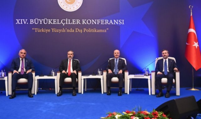 Dışişleri Bakanı Hakan Fidan'ın ev sahipliğinde gerçekleştirilen 14. Büyükelçiler Konferansı kapsamında "Türkiye Yüzyılı'nda İletişim, Kültür ve Bilim Paneli" düzenlendi.ANKARA (İGFA) - 2008'den bu yana düzenlenen Büyükelçiler Konferansı'nın 14'üncüsü Ankara'da gerçekleştiriliyor.14. Büyükelçiler Konferansı, Dışişleri Bakanı Hakan Fidan'ın ev sahipliğinde, Bakanlığın yurt dışında ve merkez teşkilatında görevli tüm büyükelçileri katılım sağlıyor.Cumhurbaşkanı Recep Tayyip Erdoğan, Cumhurbaşkanlığı Külliyesi'ndeki 14. Büyükelçiler Konferansı'nda katılımcılara hitap etti.Konuşmasına katılımcıları selamlayarak başlayan Cumhurbaşkanı Erdoğan, Büyükelçiler Konferansı'nın 14'üncüsünde katılımcılarla beraber olmaktan memnuniyet duyduğunu söyledi.Büyükelçiler Konferansı'nın ilkini 2008'de gerçekleştirdiklerini hatırlatan Cumhurbaşkanı Erdoğan, "Aradan geçen süre zarfında konferansımız, Hariciye Teşkilatımızın hem kendi içinde hem de diğer kurumlarımızla istişarelerinde katma değeri yüksek bir platforma dönüştü. 15'inci yılını geride bırakan Büyükelçiler Konferansı'nın önemli bir boşluğu doldurduğunu görüyoruz. Elbette her çalışma gibi Konferans'ın da verimliliğini arttırma noktasında iyileştirilmesi gereken yönleri olabilir. Gerek mahiyet gerekse görüşülecek konular bakımından daha rafine, daha odaklı bir programın hazırlanması memnuniyet vericidir." diye konuştu.Cumhurbaşkanı Erdoğan, artık geleneksel hâle gelen Büyükelçiler Konferansı'nı başarıyla organize ettikleri için Dışişleri Bakanlığı yetkililerini tebrik ederek Konferans'ın Dışişleri Teşkilatı ile devletin tüm birimleri için hayırlara vesile olmasını diledi.İLETİŞİM, KÜLTÜR VE PANELKonferans kapsamında düzenlenen "Türkiye Yüzyılı'nda İletişim, Kültür ve Bilim Paneli"ne Kültür ve Turizm Bakanı Mehmet Nuri Ersoy, Cumhurbaşkanlığı İletişim Başkanı Fahrettin Altun ve Yükseköğretim Kurulu Başkanı Prof. Dr. Erol Özvar katıldı.