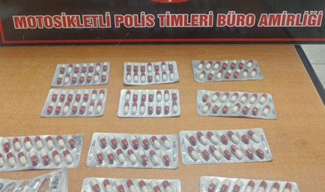 Edirne'nin Keşan ilçesinde huzur ve güvenliği sağamak adına çalışmaları sürdüren İlçe Emniyet Müdürlüğü'ne bağlı ekipler, şüphe üzerine durdurdukları plakasız motosikletin çalıntı olduğunu tespit ederken, motosikletteki iki şüpheliden biri uyuşturucu madde ile yakalandı.Erdoğan DEMİR / EDİRNE (İGFA) - Alınan bilgiye göre Keşan İlçe Emniyet Müdürlüğü ekipleri, Yukarı Zaferiye Mahallesi Şehitlik Caddesi üzerinde durumundan şüphelendikleri plakasız motosikleti durdurdu.Motosiklette bulunan U.E. ve F.D. isimli şahısların yapılan kaba üst yoklamasında F.D. isimli şahıstan reçetesiz 7 adet tablet halinde 99 adet Galara ve 4 adet tablet halinde 56 adet marka Gerica uyuşturucu hap ele geçirildi.Motosikletin Tekirdağ ilinden çalınmış olduğu tespit edilirken, şüpheli şahıs hakkında adli tahkikata başlandı.