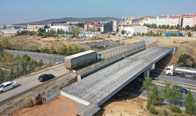 Kocaeli'nde TEM Bağlantı yolu üzerinden Çayırova ilçesine giriş çıkışları rahatlatacak olan Turgut Özal Köprüsü İkileme ve Yol Yapım işinde ilave köprünün giriş montajı yapıldı.