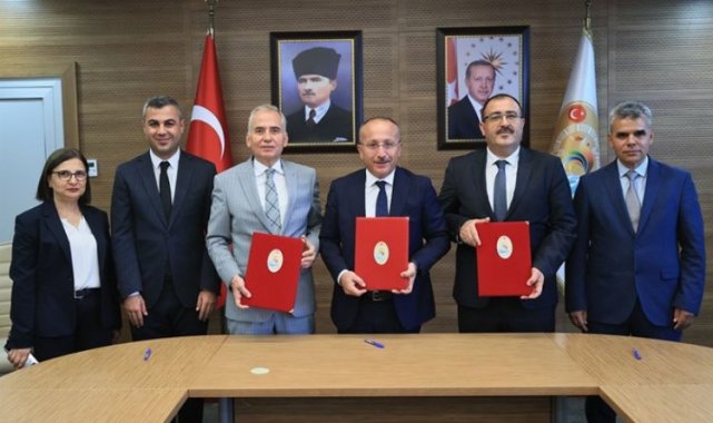 Denizli Büyükşehir Belediyesi ve Denizli Tarım ve Orman Müdürlüğü işbirliğinde kent genelindeki 4.000 çiftçiye 1.500 ton sertifikalı tohum desteği verilecek. 18 milyon liralık rekor desteğin protokolü Denizli Valisi Ali Fuat Atik ve Büyükşehir Belediye Başkanı Osman Zolan tarafından imzalandı.DENİZLİ (İGFA) - Denizli'de hayata geçirdiği kırsal kalkınma projeleriyle çiftçi ve üreticinin yüzünü güldürmeye devam eden Denizli Büyükşehir Belediyesi, Denizli Tarım ve Orman Müdürlüğü işbirliği ile rekor bir desteğe daha imza atacak. Bu kapsamda Denizli'de Buğday Üretimini Geliştirme Projesi'ni hayata geçiren Büyükşehir Belediyesi ve Tarım ve Orman Müdürlüğü kent genelindeki 4 bin çiftçiye buğday, arpa ve yem bitkisi tritikale olmak üzere yaklaşık 1.500 ton sertifikalı tohum dağıtacak. Yüzde 50'si Büyükşehir Belediyesi, yüzde 50'si ise Tarım ve Orman Bakanlığı'nın Tarım Alanlarının Kullanımının Etkinleştirilmesi (TAKE) Projesi kapsamında olmak üzere yaklaşık 18 milyon liralık tohum desteğinin protokolü Denizli Valisi Ali Fuat Atik ve Büyükşehir Belediye Başkanı Osman Zolan tarafından imzalandı. Valilikte düzenlenen protokole Vali Atik ve Başkan Zolan'ın yanı sıra Büyükşehir Belediyesi Genel Sekreter Yardımcısı Serhat Akbulut, Denizli Tarım ve Orman Müdürü Şakir Çınar ve beraberindekiler katıldı.