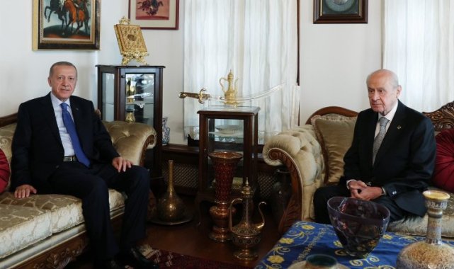 Cumhurbaşkanı Recep Tayyip Erdoğan, MHP Genel Başkanı Devlet Bahçeli ile görüştüANKARA (İGFA) - Cumhurbaşkanı Erdoğan, MHP Genel Başkanı Devlet Bahçeli'yi konutunda ziyaret etti.Cumhur İttifakı ortağı Bahçeli'nin Türkmenbeyi Caddesi'ndeki evinde gerçekleşen görüşme İletişim Başkanlığı'ndan aktarılan bilgiye göre yaklaşık 1 saat sürdü.Bahçeli, Cumhurbaşkanı Erdoğan'ı, makam otomobiline kadar eşlik ederek uğurladı.https://twitter.com/MHP_Bilgi/status/1577661242482753536