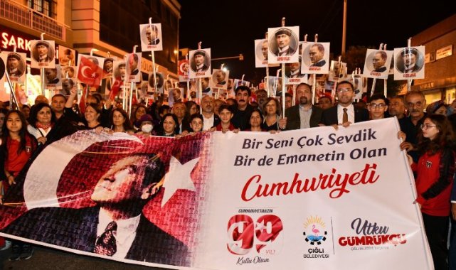 Kutlamalar 28 Ekim Cuma günü Süper Menlissa Bandosu eşliğinde gerçekleştirilen Cumhuriyet Yürüyüşü ile sürdü. Binlerce yurttaşın bayrak ve meşalelerle katılım gösterdiği yürüyüş Cumhuriyet ve Demokrasi Parkı önünden başlayarak konser alanında sona erdi. Cumhuriyet Bayramı coşkusu sanatçı Suzan Kardeş'in sahne aldığı konser ile zirve yaptı. Binlerce Cumhuriyet sevdalısı Türk müziğinin sevilen şarkılarını hep birlikte söyledi.Cumhuriyetin 99. yılına yakışır bir kutlama gerçekleştirdiklerini ifade eden Çiğli Belediye Başkanı Utku Gümrükçü, "Cumhuriyet Bayramımızı her yıl olduğu gibi bu yıl da büyük bir coşkuyla kutladık. Dolu dolu bir programla hem tarihimizi ve Milli Mücadele kahramanlarımızı andık hem de millet olarak en değerli kazanımımız olan Cumhuriyetimizin 99. kuruluş yıl dönümünü doyasıya kutladık. Çiğli dün olduğu gibi bugün de yarın da Cumhuriyetten yana olmaya devam edecek. Her etkinliğimizde bizlerle birlikte olan Cumhuriyeti benimsemiş, onu yaşayan ve yaşatmak arzusunu taşıyan yurttaşlarımıza sonsuz teşekkür ediyorum" ifadelerini kullandı.