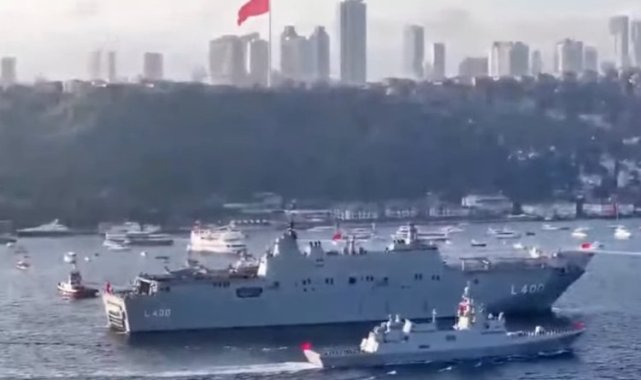 29 Ekim Cumhuriyet Bayramı ve Cumhuriyet'in ilanının 100'üncü yıl dönümü dolayısıyla İstanbul Boğazı'nda özel bir etkinlik gerçekleştiriliyor.İSTANBUL (İGFA) - Türk Donanması, İstanbul Boğazı'ndan Cumhuriyeti selamlıyor.İstanbul Boğazı'nda gerçekleşen bu töreni Cumhurbaşkanı Recep Tayyip Erdoğan da takip ediyor.Başta TCG Anadolu olmak üzere 100 gemi Boğaz'dan giriş yapmaya başladı. İstanbul Boğazı'nda yapılan bu törenin donanma tarihindeki en büyük geçit töreni olduğu açıklandı.Savaş gemilerine havadan da 14 savaş uçağı da eşlik ediyor.Törene 7 binden fazla personelin katıldığı öğrenilirken, geçit töreninde ayrıca 101 pare top atışı da gerçekleştirildi.Donanma ve Türk Hava Kuvvetleri'nin İstanbul Boğazı'ndaki geçit törenini izlemek isteyen vatandaşlar, Beşiktaş sahilinden ilgiyle takip ediyor.İletişim Başkanlığı, sosyal medya hesaplarından 100. yılda 100 gemi ile boğaz geçişini canlı olarak yayınlıyor.