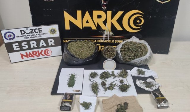 Düzce'de uyuşturucu madde ticareti yapmak suçu kapsamında 1 şüpheli uyuşturucu madde ile yakalandı.