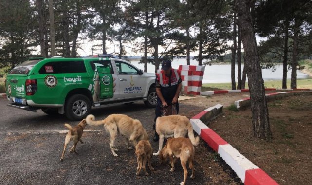 Edirne İl Jandarma Komutanlığı Çevre Doğa ve Hayvanları Koruma Timi, Uzunköprü ilçesindeki sokak hayvanları için mama desteğinde bulundu.