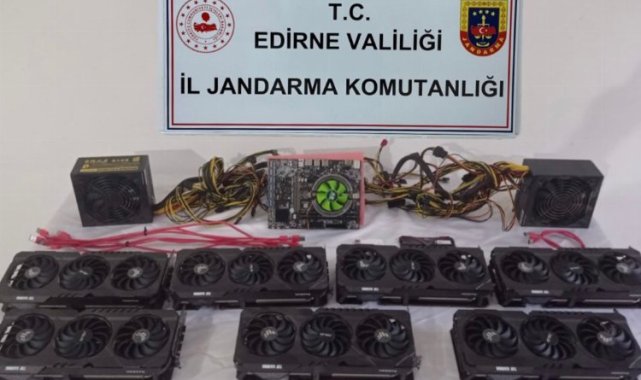 Edirne'nin Uzunköprü ilçesinde 'kripto para' üreten bir kişinin evine düzenlenen operasyonda çok sayıda malzemeye el konuldu.Erdoğan DEMİR / Keşan Postası (EDİRNE İGFA) - Edirne İl Jandarma Alay Komutanlığı ekipleri Uzunköprü'de kripto para üretimi yapıldığını tespit ettikleri 36 yaşındaki B.B.'nin evine operasyon düzenledi.Edirne İl Jandarma Komutanlığı KOM Şube ekiplerince icra edilen; Kaçakçılıkla Mücadele faaliyetleri kapsamındaki operasyonda kripto para üretimine olanak sağlayan elektronik cihazlar üzerinden kripto para üretimi yaptığı tespit edildi. Yapılan aramada; 1 Adet Anakart, 7 Adet Ekran Kartı, 2 Adet Güç Kaynağı, 1 Adet USB Bellek, 1Adet Ram ve 1 Adet İşlemci ele geçirilerek aynı zamanda gümrük kaçağı ve Piyasa değeri (210.000 TL) olan malzemeye el konuldu.Cumhuriyet Başsavcılığı'nın talimatı ile olayla ilgili tahkikata başlandı.Ekipler, kaçakçılıkla mücadele faaliyetlerinin halkın desteği ile daha da güçlü ve kararlı bir şekilde aralıksız olarak devam edileceğini duyurdu.