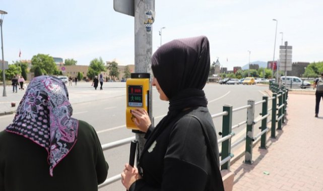 "BUTON SAYESİNDE GÖRME ENGELLİ VATANDAŞLARIMIZ ALO 153 ÜZERİNDEN BİZE ULAŞABİLİRLER"Büyüktepe, 'Engelli bireylerin bu buton sayesinde Alo 153 çağrı merkezi, numarası var. 7/24 saat görme engelli vatandaşlarımız Alo 153 üzerinden bize ulaşabilirler' diyerek, konuşmasına şöyle devam etti:"Alt tarafta da yolun başlangıcı, kaç şerit olduğu, geçeceği noktaya dair kabartmalar var. Bakacak olursak, yol hakkında bilgi veriyor. Cihaz bulunduğu konum belirtmek için, görme engelli vatandaşlarımız için cihaz bekleme modundayken bip bip sesinde bir ses çıkarıyor. Bip sesi yavaşsa lütfen bekleyin manasında kırmızı yanıyor demek oluyor. Bu ses hızlıysa geçiniz demek oluyor. Bu sayede buraya gelen vatandaşları da rahatsız etmeden, hem de görme engelli vatandaşlarımıza kendi konumunu bildiriyor. Talep verdikten sonra bekleyiniz ya da geçiniz şeklinde sözlü ikazlar ve normal bip moduna dönerek işlemini tamamlıyor."Kayseri Görme Engelliler Spor Kulübü Başkanı Ümmet Ekici de, Büyükşehir Belediyesi'nin görme engelli vatandaşların hayatını kolaylaştıran bir uygulama başlattığına dikkat çekerek, "Sürekli sabah işe giden bir kişiyim. Büyükşehir Belediyemiz, Türkiye'de ilk defa böyle bir ışıklandırma, sesli konuşma sistemini başlatmışlardı. Aradan 25 yıla yakın bir zaman geçti ve Büyükşehir Belediyemiz yeniden böyle bir hizmeti başlattı. Tabi teknoloji ilerledi, sistemler daha güzel olmuş. Vatandaşlarımız lütfen duyarlı olsunlar, belediyelerimize itiraz dilekçesi vermesinler, çünkü biz bunları rahat kullanıyoruz. Bunlar olmadığı zaman kazalar olabiliyor, sürekli birilerine muhtaç durumda kalmış olabiliyoruz. Bizim işimizi kolaylaştıran bir sistem. Büyükşehir Belediyesi ile görüşmelerimizin sonucunda Kayseri'nin en önemli noktalarına bu sesli sinyalizasyonu monte ediyorlar. Güzel bir şey inşallah bu sistemi halk otobüslerinde de bekliyoruz, çok teşekkür ediyoruz" İfadelerini kullandı.Kayseri Altınokta Kadın Kolları Başkanı üniversite öğrencisi Hanife Çetinkaya ise Kayseri'ye bu hizmetin gelmesinin çok güzel olduğunu ifade ederek, "Biz en azından yönümüzü bulabiliyoruz, geçeceğimiz ışıkları öğrenebiliyoruz ama halkımız bu konuda çok duyarsız. Şikayetler oluyor, cihazlarımız kırılıyor, aynı sağduyuyu onlardan da bekliyoruz, bizim yerimizde onlar olsaydı biz bu şekilde onlara zarar vermezdik" diye konuştu. Çetinkaya, hizmetten çok memnun olduğunu ifade ederek yetkililere teşekkür etti.