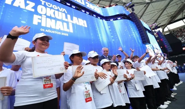 Cumhurbaşkanı Recep Tayyip Erdoğan, Türkiye Gençlik Vakfı (TÜGVA) Yaz Okulları Final Programı’nda gençlerle bir araya geldi.Coşkulu kalabalığa hitap eden Erdoğan, konuşmasında Türkiye’nin geleceği için umut dolu mesajlar verirken, hem iç hem dış politika mesajlarını net bir dille aktardı.Gençliğin asla marjinal grupların etkisine terk edilmeyeceğini vurgulayan Cumhurbaşkanı, “Sizleri muhabbetle bağrımıza basıyoruz.Bu ülkenin gençleri teröre değil, vatanına ve ümmetine sevdalı bireyler olacak” dedi.“Milletimizin hasretini çektiği büyük ve güçlü Türkiye’ye kavuşmamıza çok az kaldı” diyerek gençlere seslenen Erdoğan, terörden arınmış, huzur dolu bir ülkenin inşasında gençlerin taşıdığı role dikkat çekti.Cumhurbaşkanı, “Coğrafyamızda barış rüzgârlarının esmesine de az kaldı” ifadelerini kullandı.Konuşmasında Gazze’de yaşananlara da değinen Erdoğan, Filistin halkının uğradığı zulmü “son asrın en vahşi soykırımı” olarak tanımladı.“Sadece çocuklar, bebekler değil; insanlık adına ne varsa bir avuç caninin elinde yok ediliyor” diyen Erdoğan, Filistin direnişine yönelik ithamlara sert tepki gösterdi.“Düne kadar Gazzelilere ‘terörist’ diyenler, İsrail’den aferin almak için direnişe iftira atanlardı” diyen Erdoğan, Türkiye’nin Filistin davasındaki duruşunun değişmeyeceğini vurguladı: “Ne yaparsanız yapın, Filistin halkının kalbindeki Türkiye ve Tayyip Erdoğan sevgisini söküp atamazsınız.”Cumhurbaşkanı, Gazze için umut dolu mesajını şu sözlerle tamamladı: