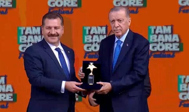 Balıkesir Büyükşehir Belediye Başkanı Yücel Yılmaz, Cumhurbaşkanı ve AK Parti Genel Başkanı Recep Tayyip Erdoğan'ın elinden 4'üncü ödülü olan "Genç Belediye Ödülü"nü aldı.BALIKESİR (İGFA) - Gençliğe yaptığı yatırımları sürdüren Balıkesir Büyükşehir Belediye Başkanı Yücel Yılmaz, Cumhurbaşkanı ve AK Parti Genel Başkanı Recep Tayyip Erdoğan'dan 4'üncü ödülünü aldı. Daha önce "Dünyayla Yarışan Şehirler", "Genç Dostu Şehirler", "Gençlik ve Yerel Yönetimler Temalı Proje Yarışması"nda ödül alan Başkan Yücel Yılmaz, son olarak yine 'Gençlik ve Yerel Yönetimler' temasıyla gerçekleştirilen 'Tam Bana Göre Festival'inde "Genç Belediye Ödülü"nü aldı.
