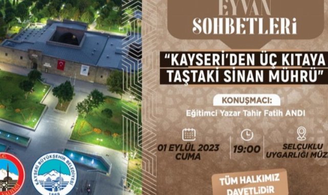 Kayseri'nin değerlerini, sahip olduğu özelliklerini, kültür ve tarihini konu alan Eyvan Sohbetleri programı, kadim kentin önemli değerlerini tanıtmaya ve farklı, çarpıcı yönler ile anlatmaya devam ediyor. Bu doğrultuda Kayseri'den dünyaya açılarak döneme ve dünyaya mimari konusunda damga vuran, 'Koca Sinan' olarak da bilinen Mimar Sinan'ı konu alan Eyvan Sohbetleri, Kayserililerle buluşacak."KAYSERİ'DEN ÜÇ KITAYA TAŞTAKİ SİNAN MÜHRÜ"Eyvan Sohbetleri'nde bu kez katılımcılarına Mimar Sinan'ı anlatacak olan konuşmacı Eğitimci Yazar Tahir Fatih Andı, "Kayseri'den Üç Kıtaya Taştaki Sinan Mührü" başlıklı konu ile ünlü mimarın hayatına ve eserlerine dair bilgiler paylaşacak.Bu akşam saat 19.00'da Selçuklu Uygarlığı Müzesi'nde gerçekleşecek Eyvan Sohbetleri, Kayserili vatandaşları bekliyor.