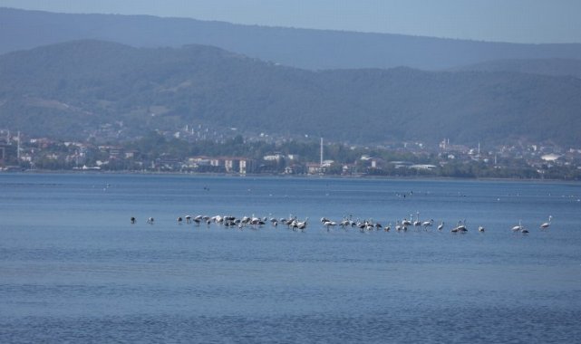 Kocaeli'de yapılan devasa arıtma tesisleri İzmit Körfezi'nin temizlenmesinde önemli rol oynadı. Her geçen gün daha da temiz hale gelen Körfez, görsel şölen oluşturan flamingoların değişmez adresi oldu.KOCAELİ (/İGFA) - Kocaeli Büyükşehir Belediyesi'nin yaptığı devasa arıtma tesisleriyle tertemiz hale gelen İzmit Körfezi, bu yıl da flamingoların yaşam merkezi olduBir zamanlar çevre kirliliği ile anılan, gri bir görünüm ve pis bir koku nedeniyle yanına yanaşılamayan İzmit Körfezi, Kocaeli Büyükşehir Belediyesi'nin yaptığı devasa arıtma tesisleriyle mavi bir görünüme kavuştu. Temizlenen ve canlı popülasyonunun arttığı İzmit Körfezi, sıcak bölgelere göç eden su kuşlarının dinlenmek ve beslenmek için tercih noktası oldu.Her yıl olduğu gibi bu yıl da İzmit Körfezi; güzel renkleri, uzun bacakları ve boyunlarıyla dikkat çeken flamingoların uğrak noktası haline geldi. Suyun üzerinde dinlenen ve zaman zaman yiyecek arayan flamingolar, bölgede görünüşleriyle de dikkat çekiyor. Renkleriyle görsel şölen yaşatan flamingolar, kartpostallık görüntüler oluşturuyor.Körfezdeki temizlik çalışmalarıyla deniz içindeki canlı popülasyonunun yanında dışındaki çeşitlik de artış gösteriyor.Arıtma tesisleri, denetimler ve deniz süpürme çalışmaları İzmit Körfezi'ni her gün daha da yaşanılabilir bir yer haline getiriyor. Yıllar önce kirlilik nedeniyle canlı yaşamının neredeyse yok olduğu İzmit Körfezi'nde gerçekleştirilen temizlik politikasıyla balık türleri artış gösterirken, körfez su kuşlarının da yeni yaşam alanı haline geldi.Göç eden su kuşlarının dinlenmek ve beslenmek amacıyla mesken tuttuğu körfez, şu anda Flamingolar başta olmak üzere birçok su kuşuna ev sahipliği yapıyor.Kocaeli Büyükşehir Belediyesi ekiplerince sık sık temizlenen sulak alanda avlanma yapılmaması için ilgili müdürlüklerce koruma altına altında.