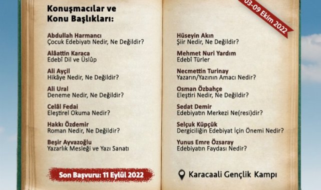 Bursa Büyükşehir Belediyesi, edebiyata ve yazıya meraklı olanların eleştirel okumayı öğrenmesi ve yazı yazma kabiliyetini geliştirmesi amacıyla, 3-9 Ekim tarihleri arasında 'Bursa Edebiyat ve Yazı Kampı' düzenleniyor.BURSA (İGFA) - Bursa'nın daha yaşanabilir şehir olması amacıyla birçok projeyi hayata geçiren Büyükşehir Belediyesi, kültürel ve sosyal çalışmaları ara vermeden sürdürüyor.Gençlerin daha donanımlı ve kültürel birikime sahip olmasını hedefleyen Büyükşehir Belediyesi, 3-9 Ekim tarihleri arasında edebiyat ve yazıya meraklı olanlar için 'Bursa Edebiyat ve Yazı Kampı' düzenleniyor. Eleştirel okumayı öğrenmek, yazı yazma kabiliyetini geliştirmek ve edebiyat ile düşünce dünyasını zenginleştirmek isteyenlere yönelik planlanan kamp, bir hafta boyunca Karacaali Gençlik Kampı'nda yapılacak.50 kişilik kontenjana sahip kampa, Bursa'da üniversite okuyan veya ailesi Bursa'da ikâmet eden, 18-30 yaş aralığında ve lisans, yüksek lisans veya doktora eğitimine devam eden herkes başvuru yapabilecek. Katılımcılar, okudukları kitapla ilgili duygu ve düşüncelerini içeren bilgilendirme yazısının seçici kurul tarafından değerlendirilmesi neticesinde belirlenecek.Başvuru yapmak isteyenlerin [email protected] e-posta adresine, 11 Eylül Pazar günü saat 23.59'a kadar gerekli belge ve bilgileri iletmesi gerekiyor.Türkiye'nin önde gelen şair, yazar, edebiyatçı ve akademisyenlerinin seminer vereceği bir haftalık kamp boyunca, Abdülhak Şinasi Hisar'ın 'Fahim Bey ve Biz', Ahmet Hamdi Tanpınar'ın 'Beş Şehir', Attila İlhan'ın 'Hangi Batı', Cemil Meriç'in 'Bu Ülke', Hüseyin Nihal Atsız'ın 'Ruh Adam', Refik Halid Karay'ın 'Memleket Hikâyeleri', Yahya Kemâl Beyatlı'nın 'Kendi Gök Kubbemiz' adlı eserleri, Hakkı Özdemir yönetiminde tahlil edilecek.Bursa Edebiyat ve Yazı Kampı'nda; Abdullah Harmancı 'Çocuk Edebiyatı Nedir, Ne Değildir?', Alâattin Karaca 'Edebî Dil ve Üslûp', Ali Ayçil 'Hikâye Nedir, Ne Değildir?', Ali Ural 'Deneme Nedir, Ne Değildir?', Beşir Ayvazoğlu 'Yazarlık Mesleği ve Yazı Sanatı', Celâl Fedai 'Eleştirel Okuma Nedir?', Hakkı Özdemir 'Roman Nedir, Ne Değildir?', Hüseyin Akın 'Şiir Nedir, Ne Değildir?', Mehmet Nuri Yardım 'Edebî Türler', Necmettin Turinay 'Yazarın/Yazının Amacı Nedir?', Osman Özbahçe 'Eleştiri Nedir, Ne Değildir?', Sedat Demir 'Edebiyatın Merkezi Ne(resi)dir?', Selçuk Küpçük 'Dergiciliğin Edebiyat İçin Önemi Nedir?' ve Yunus Emre Özsaray 'Edebiyatın Faydası Nedir?' başlığı altında edebiyatseverlere seminer verecek.Ücretsiz olan kamp ile ilgili ayrıntılı bilgi ve başvuru şartları için www.bursa.bel.tr/duyuru/bursa-edebiyat-ve-yazi-kampi-31900 adresi ziyaret edilebilir.