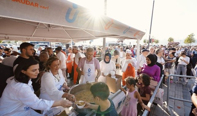 İstanbul Üsküdar'da Mihrimah Sultan Camii önünde muharrem ayı dolayısıyla dev kazanlarda kaynatılan aşureler binlerce vatandaşa ikram edildi.İSTANBUL (İGFA) - Üsküdar Belediyesi tarafından düzenlenen programda Kur'an-ı Kerim tilaveti sonrası Üsküdar Belediye Başkanı Hilmi Türkmen, AK Parti İstanbul Milletvekilleri Mihrimah Belma Satır ve Müşerref Pervin Tuba Durgut önlüklerini giyerek vatandaşlara aşure dağıttı.Üsküdar Belediye Başkanı Hilmi Türkmen, aşure günü dolayısıyla Üsküdar meydanında aşure ikramında bulunduklarını belirterek, "Bu aşureler şehitlerimizin ruhu için, Kerbela şehitlerimizin ruhu için, Hz. Hüseyin'in ruhu için, Ehli Beyt'in ruhunu anmak için güzel bir program. Biz millet olarak Sünnisiyle, Alevisiyle, Kürdüyle, Türküyle, Lazıyla, Çerkeziyle aynen bu aşurenin malzemeleri gibi birbirimize renk, tat, güzel bir armoni, güzel bir lezzet ortaya çıkacak zenginliğimiz var aslında. Bunun en güzel örneği de aşuredir. Bu güzel aşureleri hemşehrilerimiz afiyetle yesinler" dedi.