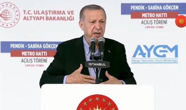 Cumhurbaşkanı Erdoğan, Pendik-Sabiha Gökçen Metro Hattı Açılış Töreni'nde açıklamalarda bulundu. "Bu şehrin her gündemi bizim gündemimizdir" diyen Erdoğan, İstanbul Büyükşehir Belediyesi yönetimini eleştirdi. Teröre yönelik mesajlarda veren Cumhurbaşkanı Erdoğan, teröristleri aklama görevini CHP'nin üstlendiğini öne sürdü.İSTANBUL (İGFA) - İstanbul'da yeni metro hattının açılış töreni yapıldı. Pendik-Sabiha Gökçen Havalimanı Metro Hattı, Cumhurbaşkanı Recep Tayyip Erdoğan'ın katılımıyla açıldı.7,4 kilometre uzunluğundaki yeni hattın açılış töreninde Cumhurbaşkanı Erdoğan, önemli mesajlar verdi.İstanbul'daki raylı sistem ağının yarısının Ulaştırma ve Altyapı Bakanlığı tarafından İstanbul'a kazandırıldığına dikkati çeken Cumhurbaşkanı Erdoğan, "Birileri bizim yaptıklarımızı sahiplenmek istiyor" diyerek, "Artık Sabiha Gökçen'e Pendik'ten 10 dakikada, Kartal'dan 12 dakikada, Kadıköy'den 50 dakikada ulaşmak mümkün olacak" dedi.Konuşmasında İstanbul Büyükşehir Belediyesi yönetimine ve CHP'yi de eleştirdi.https://youtu.be/P7-F9p8gu7oERDOĞAN'DAN İSTANBUL BÜYÜKŞEHİR BELEDİYESİ'NE ELEŞTİRİErdoğan, belediye başkanlığı döneminde, o zamandan bugüne "insanı yaşat ki devlet yaşasın" mantığıyla her zaman milletimize hizmet etme derdinde olduklarını kaydetti."Muhalefet başlamış metro hatlarına hafriyat dökerken biz bakanlıklarımız vasıtıyla vatandaşlarımızı raylı sistemlere kavuşturmaya devam ediyoruz" diyen Erdoğan, "Eli İstanbul'da gözü başka yerde olanların eksiğini biz tamamlıyoruz. İstanbul'da sel oluyor, kar yağıyor, kriz yaşanıyor, bakanlarımızla anında olay yerindeyiz. İstanbul'un Belediye Başkanı nerede? Bodrum'da! Ama Erdoğan'ın bakanları nerede vakanın olduğu yerde" diye konuştu.