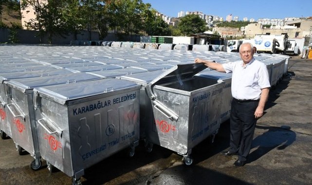 İzmir'in Karabağlar Belediyesi, ilçenin daha temiz tutulması ve vatandaşlara daha sağlıklı hizmet vermek amacıyla temizlik altyapısını güçlendirmeye devam ediyor.İZMİR (İGFA) - İzmir'in Karabağlar Belediyesi'ne bağlı Temizlik İşleri Müdürlüğü'ne geçen aylarda kazandırılan 4 yeni çöp kamyonunun ardından, satın alınan 700 litrelik metal konteynerler de sokak ve caddelere yerleştirilmeye başlandı.