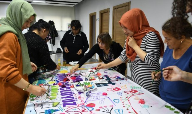 İzmir'de Karabağlar Belediyesi, 25 Kasım Kadına Şiddete Karşı Uluslararası Mücadele Günü kapsamında “Kadın Çemberi” adlı atölye çalışması düzenledi.