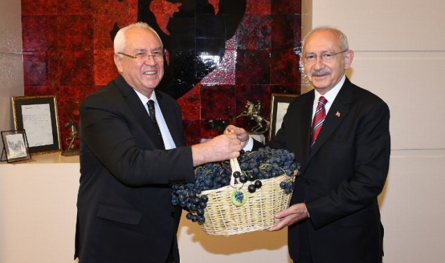 İzmir'de Karabağlar Belediye Başkanı Muhittin Selvitopu, CHP Genel Başkanı Kemal Kılıçdaroğlu’nu makamında ziyaret ederek, bu haftasonu gerçekleştirilecek Kavacık Üzüm Festivali’ne davet etti.